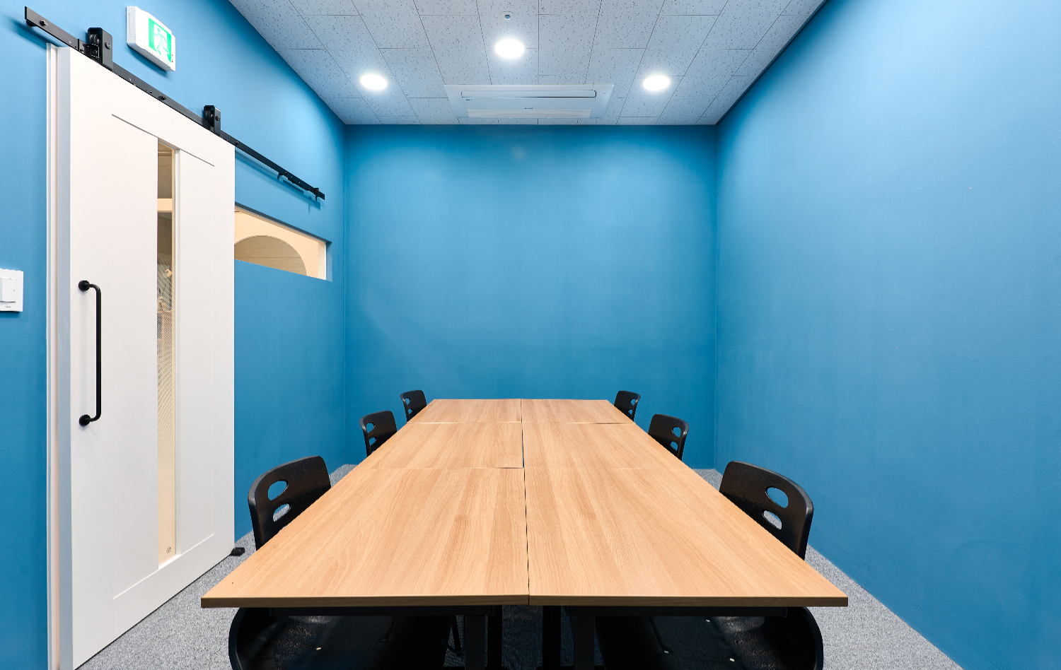 소규모로 진행되는 클래스룸에는 하늘색과 같은 푸른 계열을 사용하였는데요. 이 또한 푸른색 계열이기에 눈 피로를 덜어주고 심신을 안정시켜주는 컬러입니다. 색상마다 주는 느낌이 달라서 항상 공간마다 쓰여지는 칼라도 다르기 마련인데요. 요즘은 보통 주거 인테리어가 화이트가 대세라면 이렇게 아이들이 다니는 학원에서는 파랑, 초록, 그레이색상이 많이 쓰이고는 합니다.
