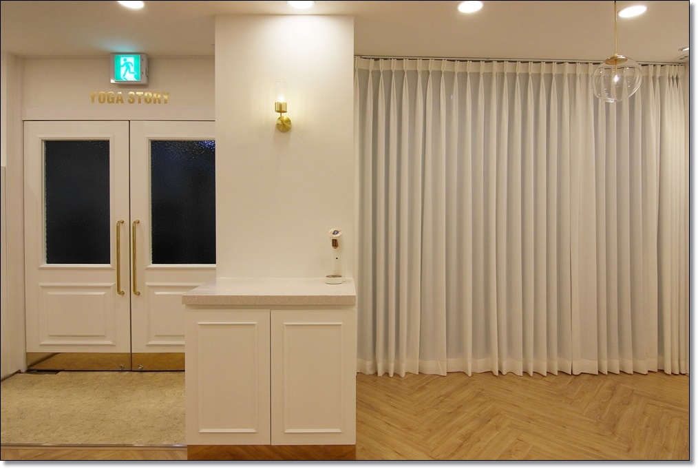 요가원에서 가장 중요한 스튜디오는 다양한 프로그램이 진행되는 곳이지만 심신을 수련하는 곳이므로 아늑하게 만드는 것이 좋습니다. 전체적으로 밝은 우드 소재를 적용해 내추럴하면서 깔끔한 인테리어를 조성했고 빛이 고르게 퍼지는 분할 매입 조명을 시공해 밝고 화사하며 높고 깔끔한 공간이 되도록 했습니다. 벽면에 거울을 시공해 공간이 두 배로 넓어 보이도록 했고 조명이 비춰 더욱 화사한 공간이 되도록 했으며 운동 시 정확한 동작을 취할 수 있도록 했습니다.