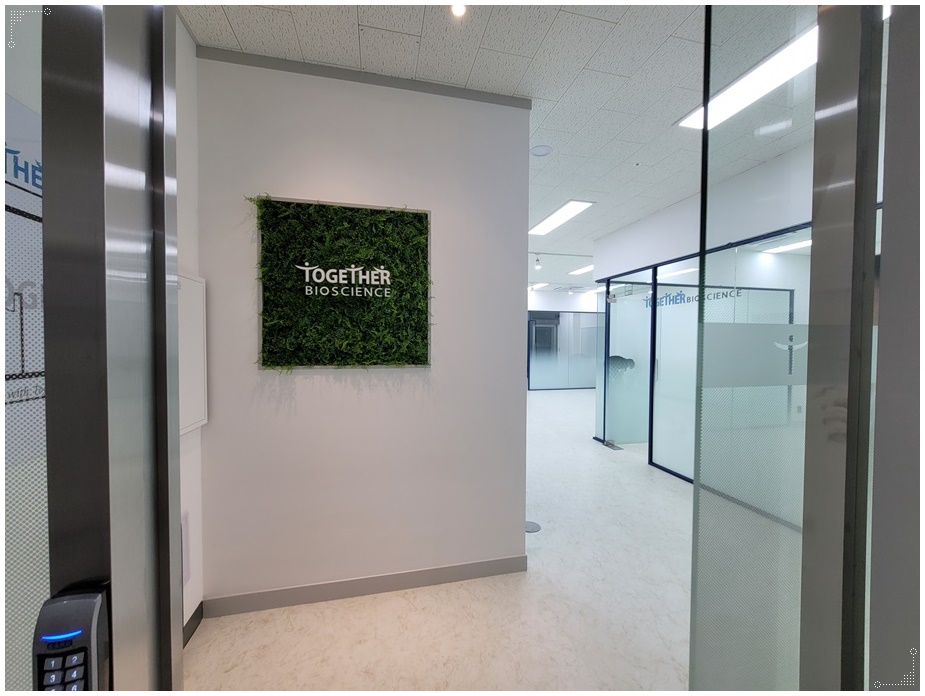 깔끔하고 세련된 디자인의 유리 도어를 열고 들어가면 깨끗한 하얀색 벽에 회사명과 로고를 연출한 간판이 붙어있습니다. 환경 관련 기업의 이미지에 맞게 식물로 연출한 간판이 인상적이면서 덕분에 회사의 정체성을 확립할 수 있었고 가독성을 높였습니다.