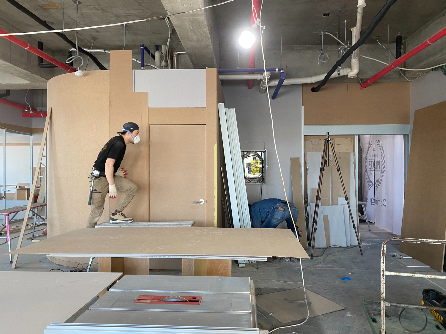 철골 작업으로 뼈대를 만들어준 후 깔끔한 마감을 위해 목공 작업으로 한번 더 부분 시공을 진행했습니다.