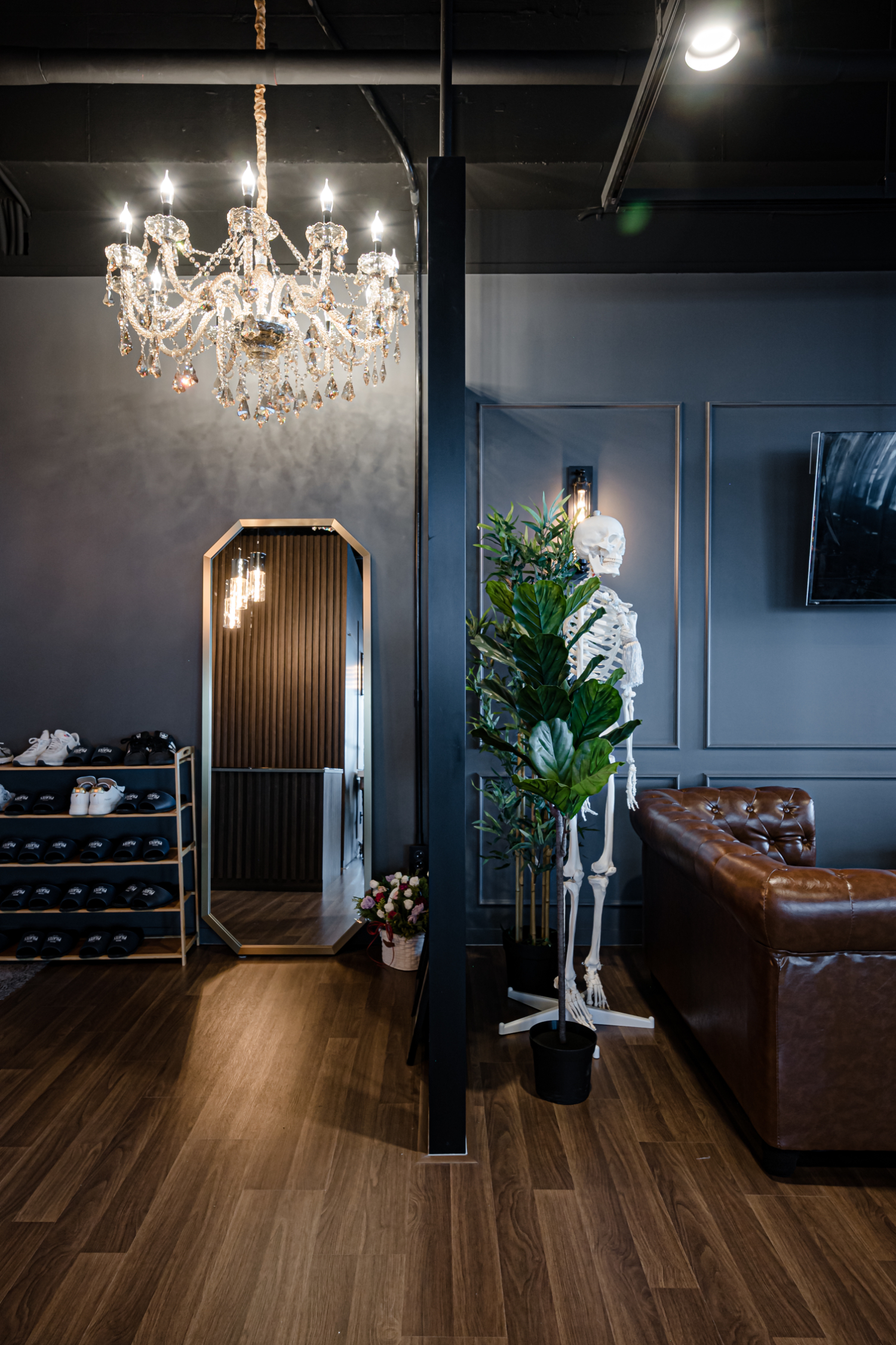 층고가 돋보입니다. 천장까지 블랙 컬러로 깔끔하게 도장하여 노출형 천장이지만 정돈된 느낌을 줍니다.