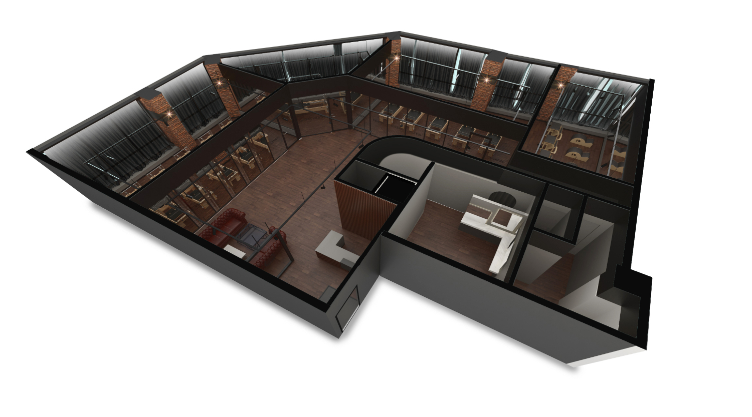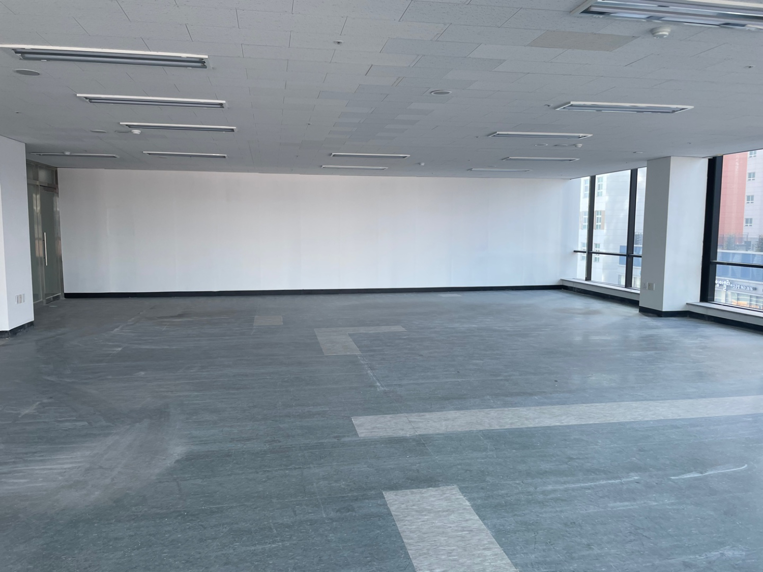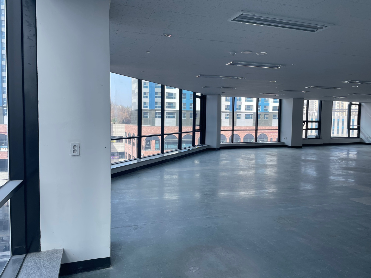 필라테스인테리어 시공이 진행될 공간은 넓은 평수와 탁 트인 시야로 개방감이 느껴지는 곳이었습니다. 다각형 구조였으나 오픈형으로 되어 있어 새로 공간을 구성 하기에는 좋은 조건이었습니다. 시공에 앞서 설계에 따라 한번 더 꼼꼼하게 체크 해주었습니다.