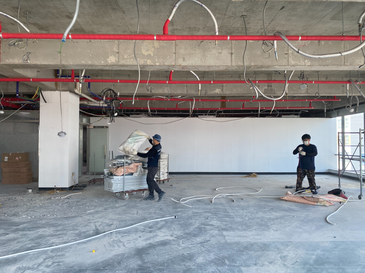 철거 후에는 기초 설비 작업, 스프링쿨러 및 소화전 이전을 진행 했습니다. 안전과도 직결되는 부분인만큼 전문가와 협업하여 꼼꼼하게 작업 했습니다.