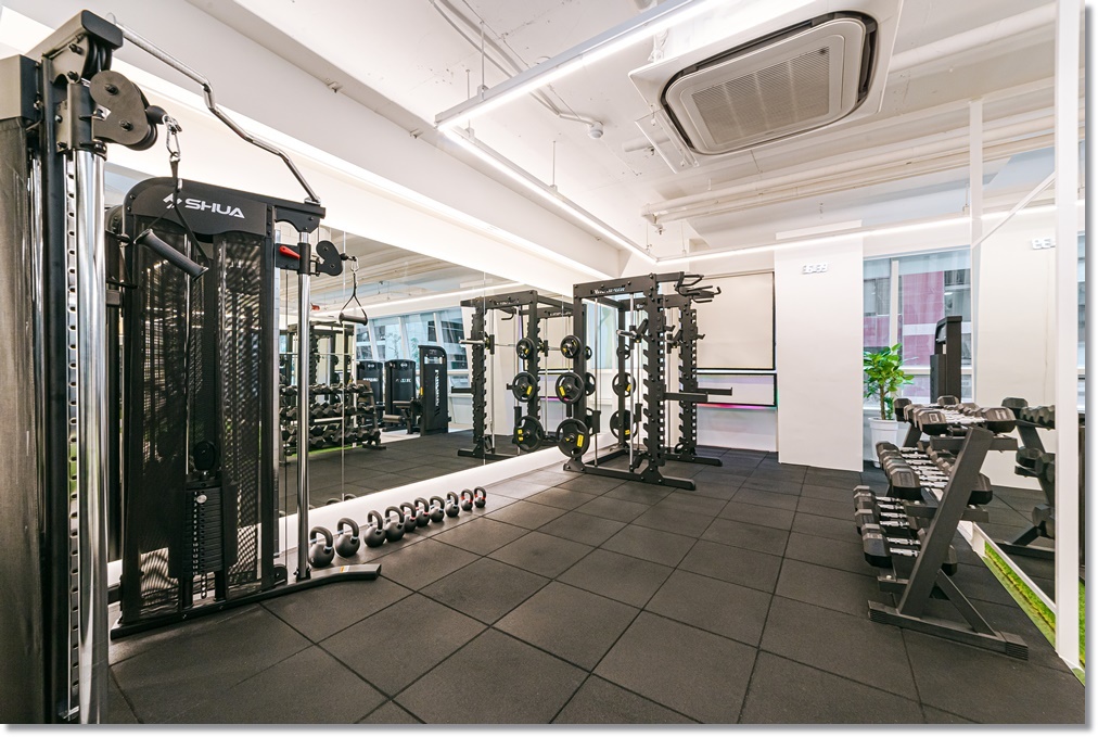 운동 영역은 1:1 PT 존, 근력운동을 할 수 있는 머신존, 유산소운동존, 프리웨이트존으로 구분해 기구를 배치했습니다. 기구를 존별로 배치를 하면 운동 효율과 효과를 높일 수 있지만 그렇지 않으면 두서없는 기구배치로 완공 후 기구 재배치라는 큰 공사를 다시 해야하므로 반드시 경험 많은 전문 인테리어업체에 공사를 맡기시는 것이 바람직합니다.
