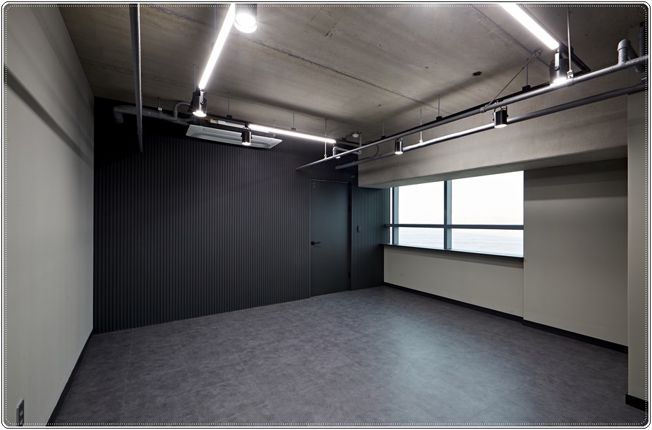 상부 공간으로 올라오면 노출천장의 배관이 그대로 드러나있어 인더스트리얼 컨셉트의 인테리어를 연출했습니다. 만약, 노출천장을 시공한 공간을 모던한 컨셉으로 인테리어하고 싶다면 화이트로 마감을 하면 되고 깊고 중후함을 조성하고 싶다면 블랙으로 마감하면 효과를 기대할 수 있답니다.