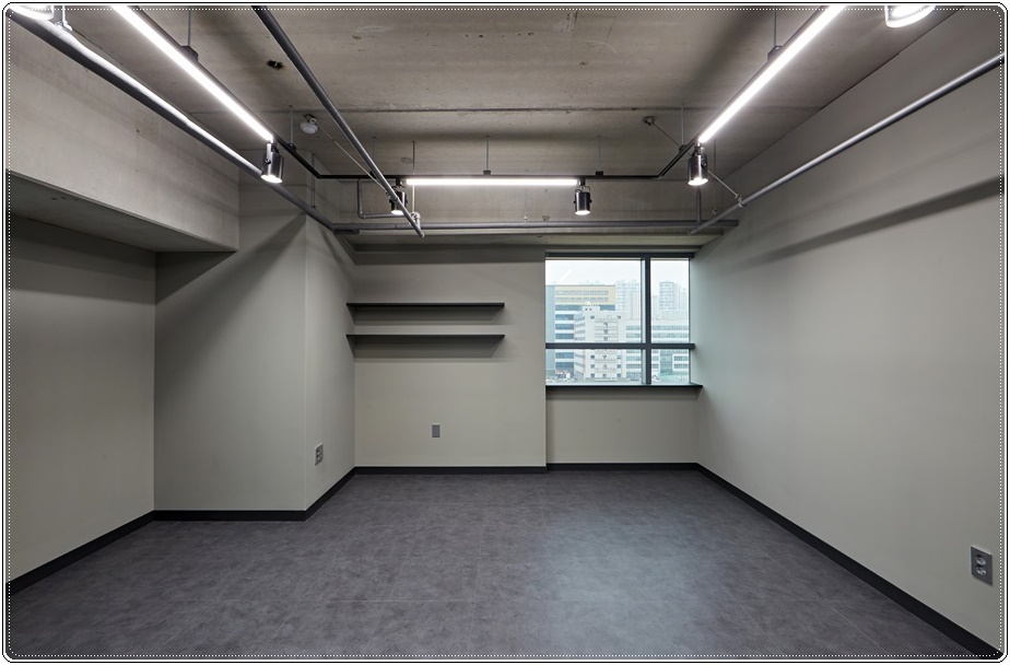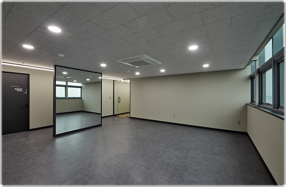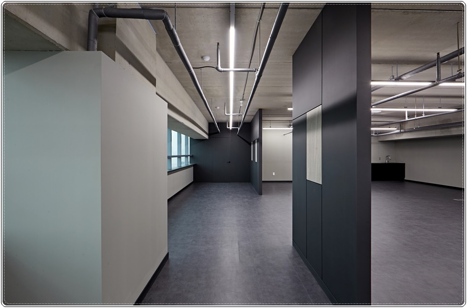 복층 하부 공간입니다. 창고, 세미나룸, 회의실 등은 가벽을 세워 시공함으로써 그 목적과 기능에 충실하도록 했고 각 공간으로는 복도를 통해 이동할 수 있어 동선도 명확합니다.