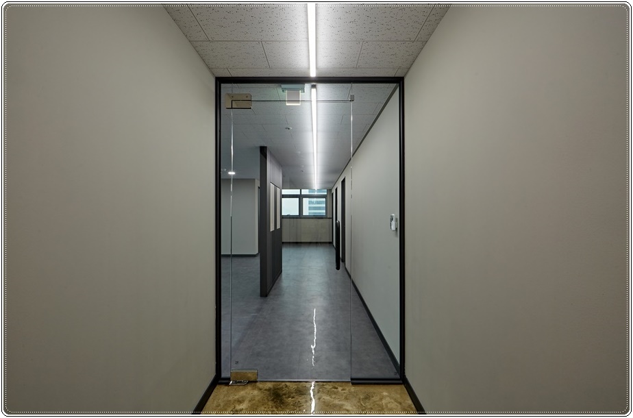중문을 시공해 외부 동선이 진입할 수 있는 공간과 직원 동선이 진입할 수 있는 공간을 완벽하게 나눠 방문객을 관리할 수 있습니다. 중문은 내부에서만 열 수 있고 내부에서 나갈 때에도 직원용 출입카드를 태그해야만 문이 열릴 수 있는 시스템을 적용해 방범과 보안을 강화했습니다.