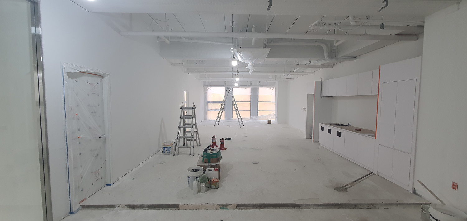갈색밖에 없던 목공판에 화이트 컬러 도장을 입히고 조금씩 형태를 드러내는 모습입니다. 가벽이 필요한곳에는 벽을 설치하고 유리 작업은 물론 필요한 모든 시공이 이뤄지게 되는데요. 916디자인에서는 처음부터 끝까지 깔끔한 일처리를 자랑하고 있으며 작업에서의 마감도 중요하지만 모든 시공이 끝났을 때의 모습까지 깔끔할 수 있도록 돕고 있습니다. 그리고 모두 경력이 오래된 베테랑 기사들로만 팀이 이루어져있기 때문에 높은 퀄리티와 만족도를 보여드리고 있는데요. 완공된 현장을 살펴보실까요?