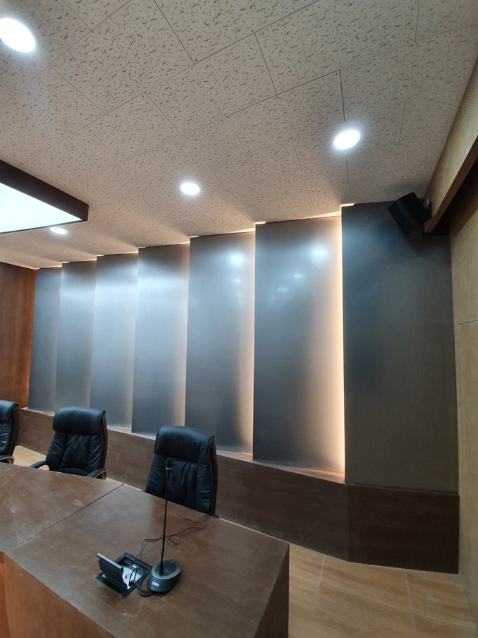 시공 기간도 짧아 사무실인테리어를 할 때 적용하면 회사 공사비용을 줄일 수 있는 방법이지만 얼만큼 깔끔하게 작업하느냐에 따라 퀄리티가 달라지므로 반드시 전문업체에 맡기시는 것이 좋습니다. 테이블 하부와 벽면에 간접조명을 시공해 고급스러운 느낌을 더욱 살렸고 회의실에 대한 강한 인상으로 남을 수 있도록 했습니다.