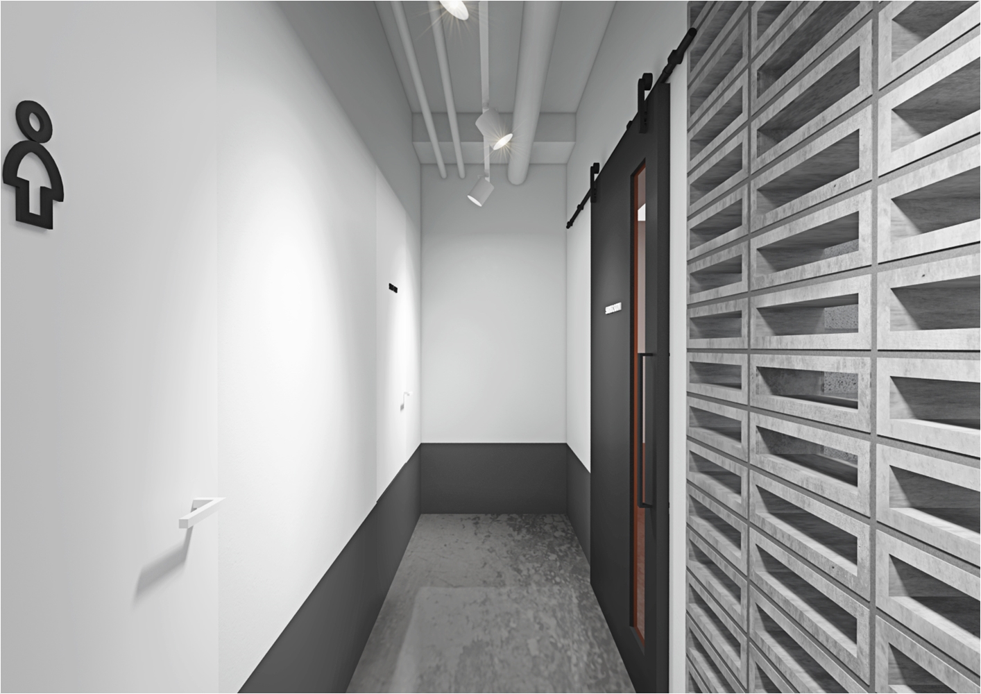 화장실과 업무공간으로 이어지는 공간을 트랜디하게 디자인설계에 반영을 하였습니다.